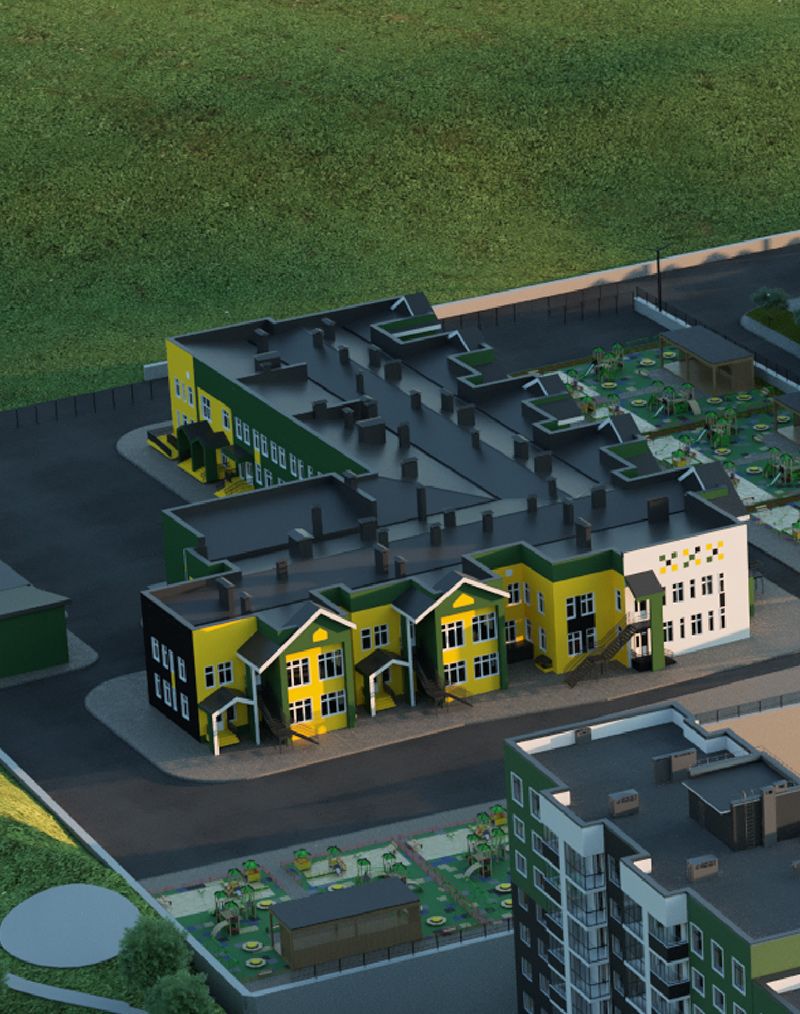 Мы позаботились и о семьях с маленькими детьми! На территории нашего комплекса 1,2 га земли выделено под строительство детского сада. Согласитесь это огромный плюс, когда детский сад располагается в шаговой доступности и вам не нужно тратить время на дорогу.